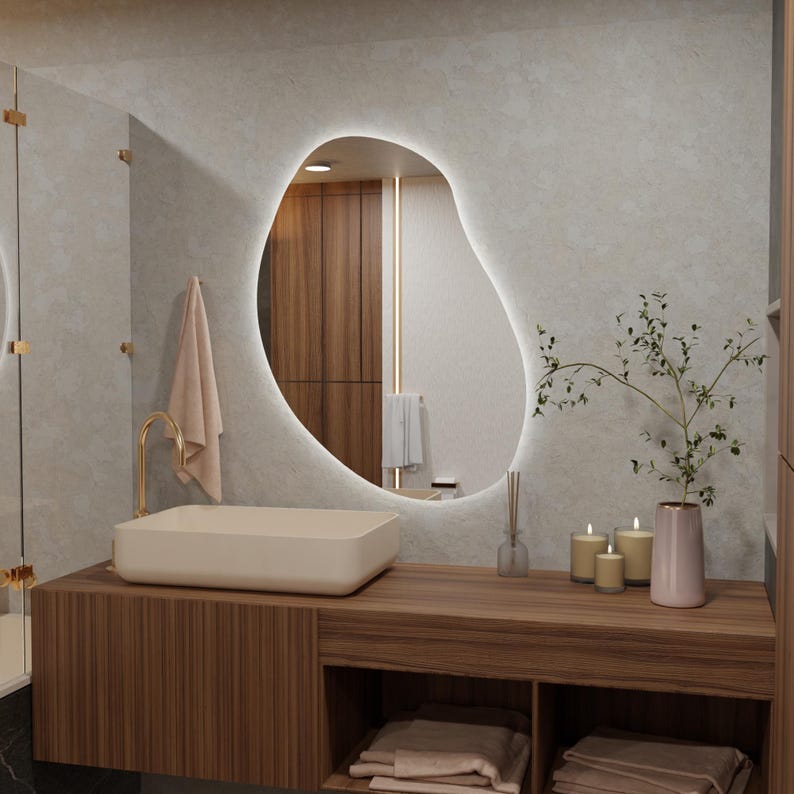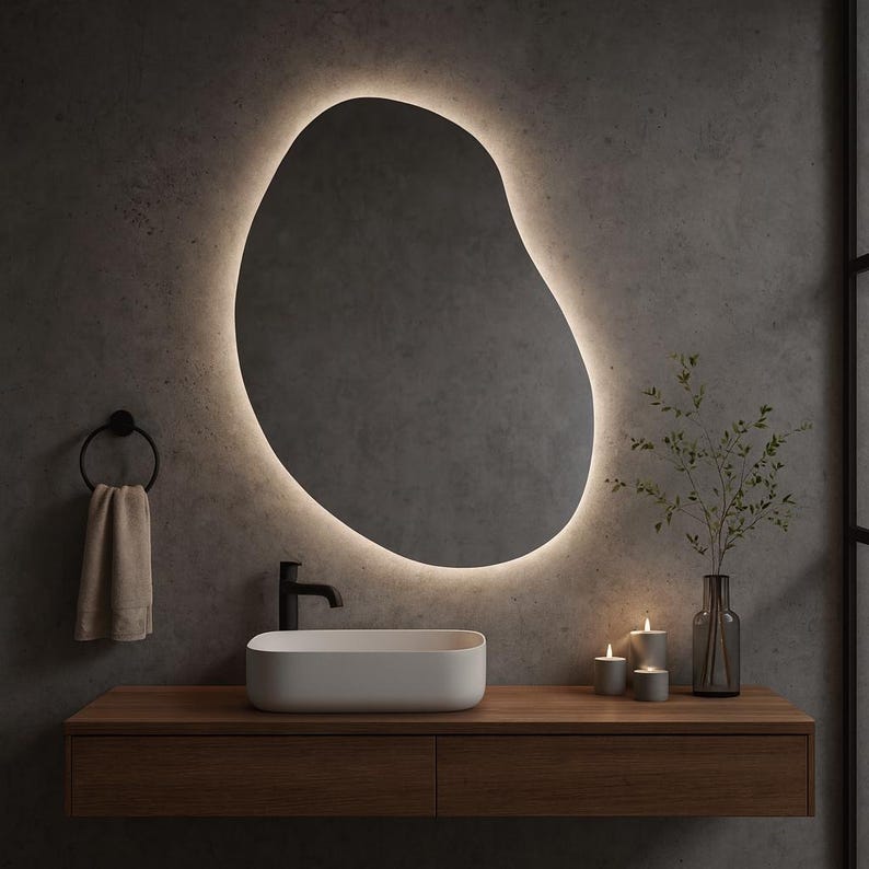Organic Shape LED Wall Mirror – Irregular Backlit Vanity Mirror, Modern Home Decor