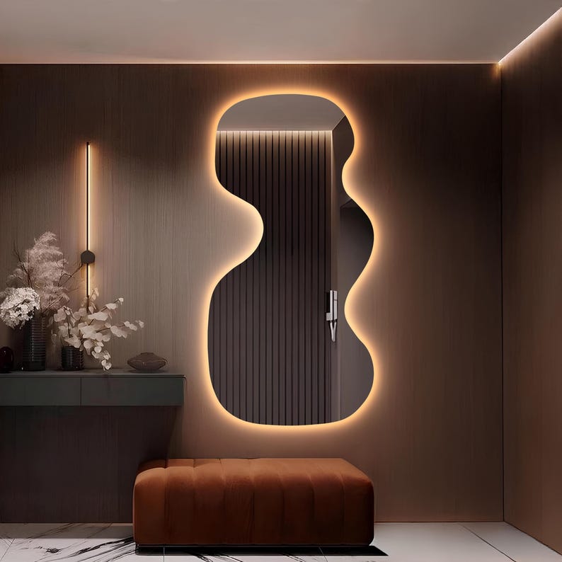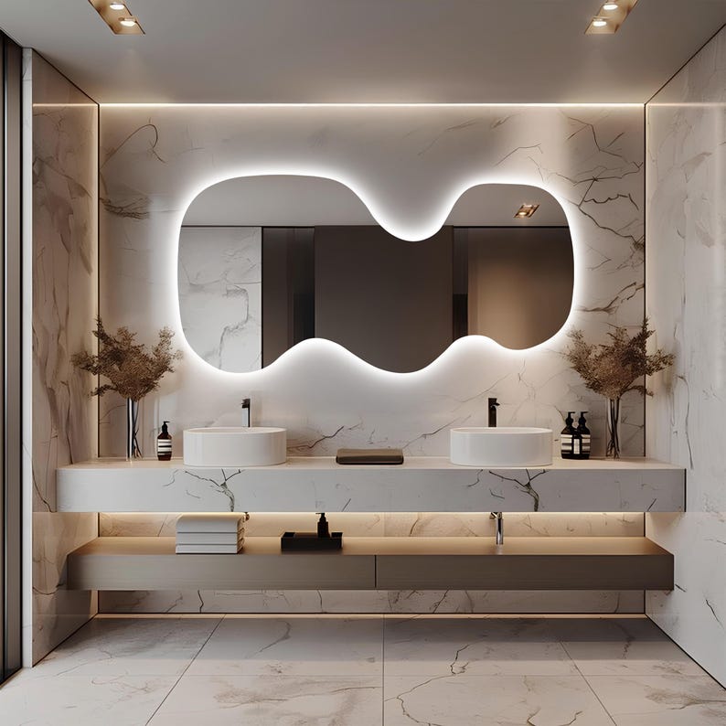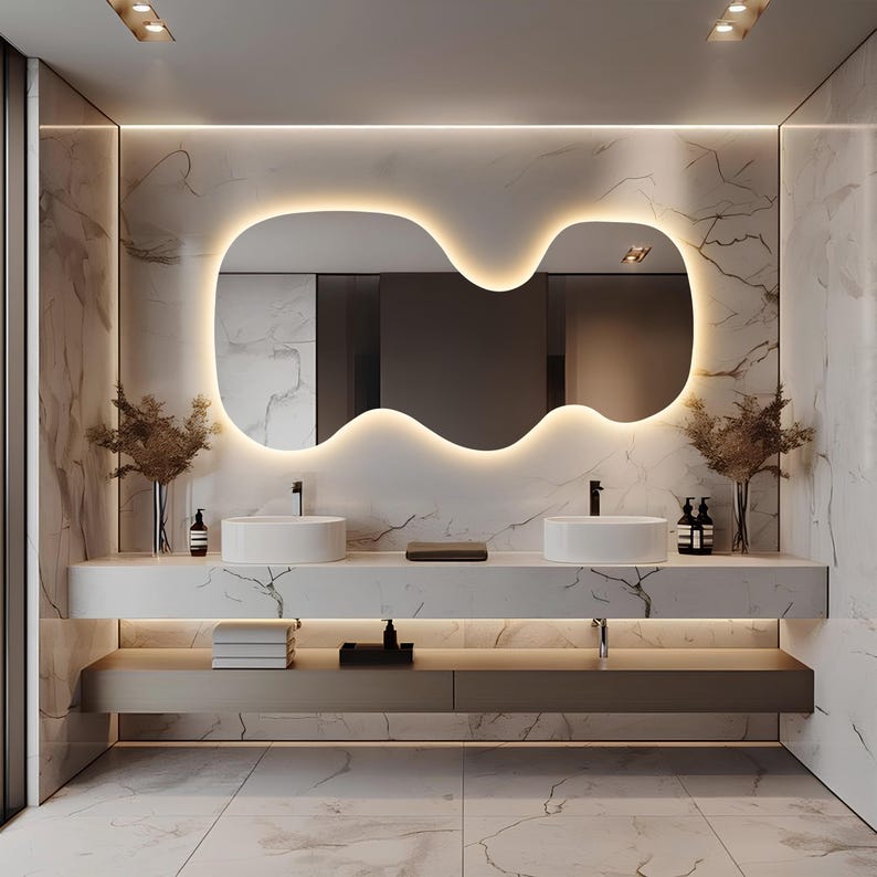 Wavy Asymmetrical LED Mirror – Modern Backlit Wall Decor