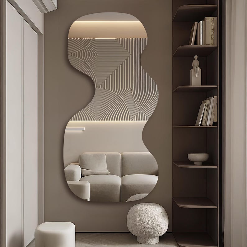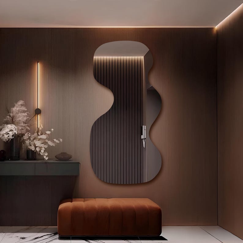 Be the first to review “Wavy Asymmetrical LED Mirror – Modern Backlit Wall Decor”