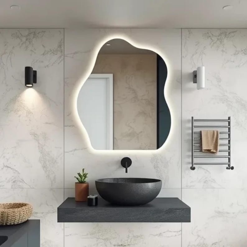 Be the first to review “Wavy LED Bathroom Mirror – Irregular Backlit Modern Wall Mirror”