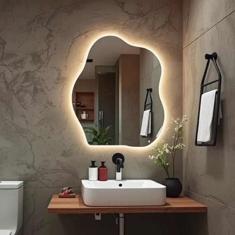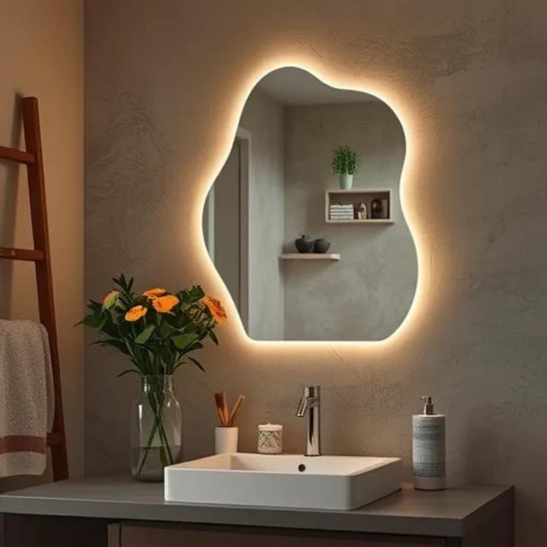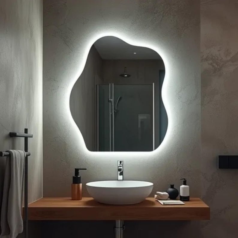 Wavy LED Bathroom Mirror – Irregular Backlit Modern Wall Mirror